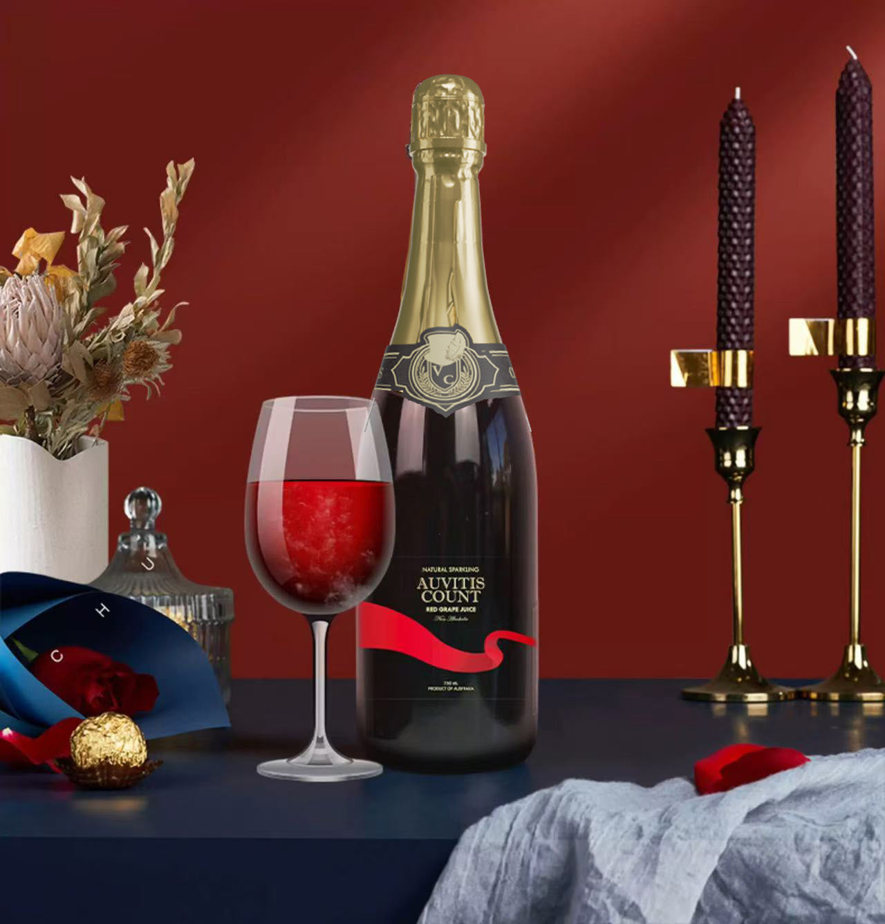 Crafted from premium Australian grapes, this non-alcoholic sparkling red grape juice delivers a fragrant blend of strawberry and lychee notes. With zero alcohol, no additives, and 60% less sugar, it offers a smooth balance of sweetness and acidity, creating a refreshing, elegant taste. Perfect for parties, toasts, or a healthy daily treat.