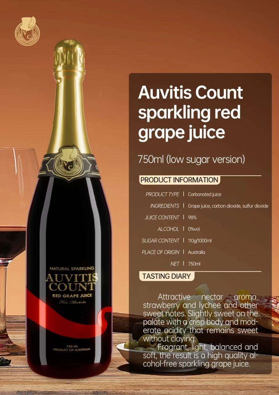 Auvitis Count Non-Alcoholic Sparkling Red Grape Juice 750ml Low Sugar 6 bottles