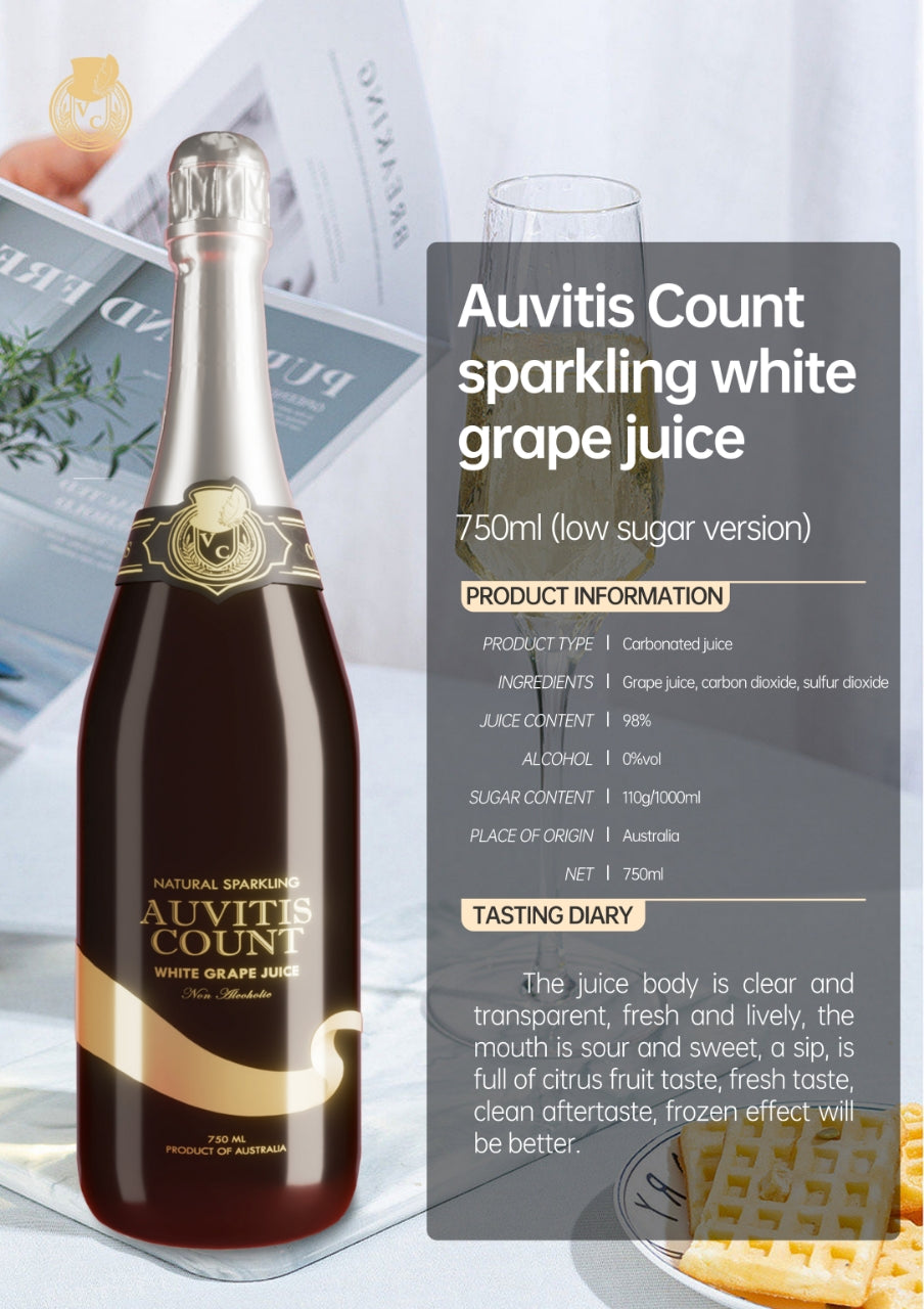 Auvitis Count Non-Alcoholic Sparkling White Grape Juice 750ml Low Sugar 6 bottles